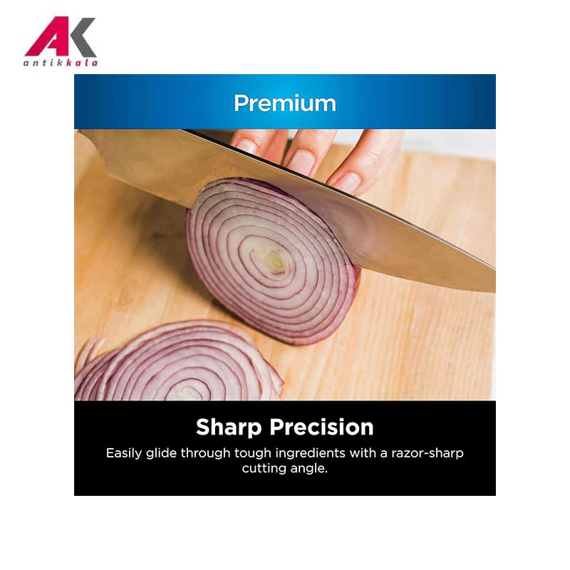 1 چاقوی نان 8 اینچی ,1 عدد چاقوی برش 8 اینچی ,1 عدد چاقوی پوست کن 3.5 اینچی ,1 عدد چاقوی خرد کردن استخوان 5 اینچی ,1 عدد چاقوی سانتوکو برای برش و خرد کردن 7 اینچی ,1 عدد چاقوی سرآشپز 8 اینچی ,1 عدد چاقوی همه کاره 5 اینچی ,6 عدد چاقوی برش استیک 4.5 اینچی |