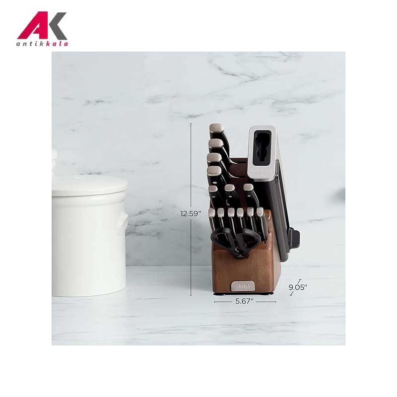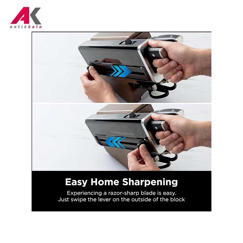 امکان تیز کردن چاقوها در شیار تعبیه شده روی بلوک ,بکارگیری چوب گردوی مرغوب و مستحکم در ساخت بلوک ,به توصیه کمپانی نینجا تیز کردن چاقوها را هر 2 هفته یکبار به انجام برسانید ,به توصیه کمپانی نینجا چاقوها را در ماشین ظرفشویی قرار ندهید. بعد از استفاده چاقوها را به صورت دستی شستو داده و خشک کنید |