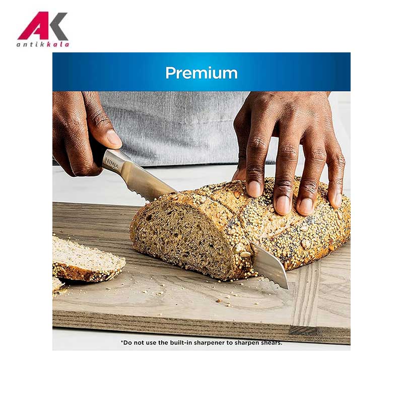 بلوک قرارگیری چاقوها دارای شیار چاقو تیز کن ,قیچی همه کاره؛ برش نان، سبزیجات، باز کردن بسته بندی و … |