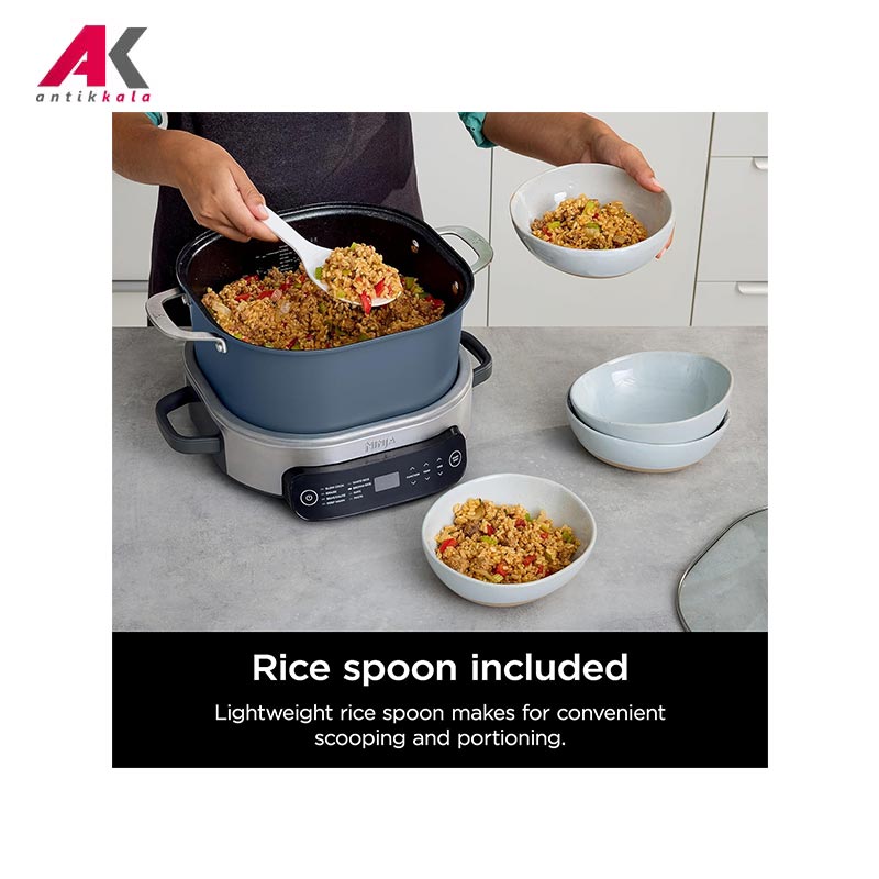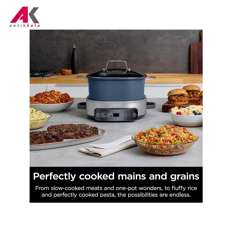 مولتی کوکر نینجا مدل MC1101 با برخورداری از سبک طراحی مدرن و امکانات متنوع آشپزی نسل جدیدی از ابزارهای پخت و پز این برند معتبر محسوب میشود. این ابزار یک بخش قابل تفکیک از قسمت پایینی دستگاه دارد که درست شبیه به یک قابلمه عمل میکند. از همین بابت کار کردن با این مولتی کوکر در کنار بهرهگیری از امکانات جدید، روشهای سنتی پخت را نیز در ذهن کاربر تداعی میکند. ظرفیت کارکرد مخزن پخت این محصول 6.1 لیتر است که وعدههایی برای یک جمع خانوادگی بزرگ را تهیه میکند. توان مصرفی 1400 واتی کمک میکند تا انرژی لازم برای انتشار دمای ایدهآل درون مخزن و پخته شدن یکنواخت مواد غذایی به وجود بیاید.