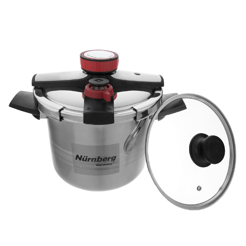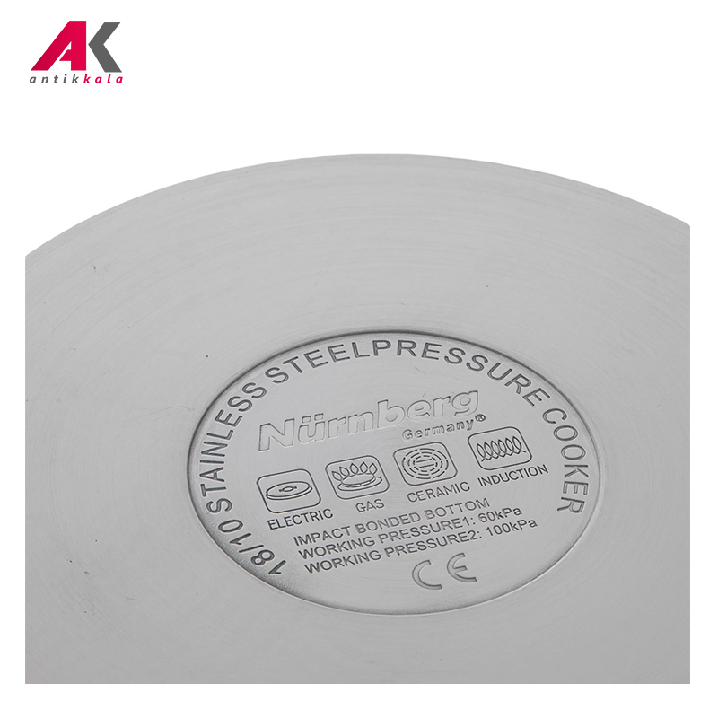 زودپز 7 لیتری نورنبرگ مدل NURNBERG NG-347، زودپزی با جنس بدنه استیل از تولیدات این برند ساخت کشور چین و تحت لیسانس کشور آلمان است. وجود 2 عدد دستگیره پلاستیک باکالیتی نسوز ثابت جابجایی زودپز NG-347 را تسهیل بخشیده است. علاوه بر دری اصلی زودپز، درب شیشه ای دیگری نیز بعنوان اقلام جانبی برای این زودپزه تعبیه شده که امکان استفاده از آن بعنوان قابلمه را مهیا میسازد. همچنین تعبیه سوپاپ ایمنی و قفل باز کن و قفل کن پیچی، ایمنی استفاده از این دستگاه را متضمن میشود. قابلیت استفاده روی انواع اجاق گاز، امکان شستشوی قطعات در ماشین ظرفشویی و قابلیت تنظیم فشار بخار دیگ در محدوده 60 تا 100 كيلو پاسكال از دیگر امکانات زودپز NURNBERG NG-347 میباشد.
