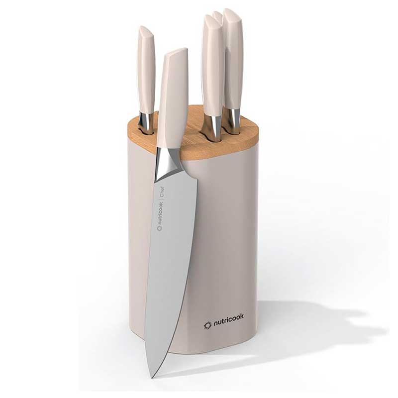 چاقوها دارای تیغه 2.5 میلیمتری استیل ,شیارهای چاقو برخوردار از فناوری تیزکن داخلی |