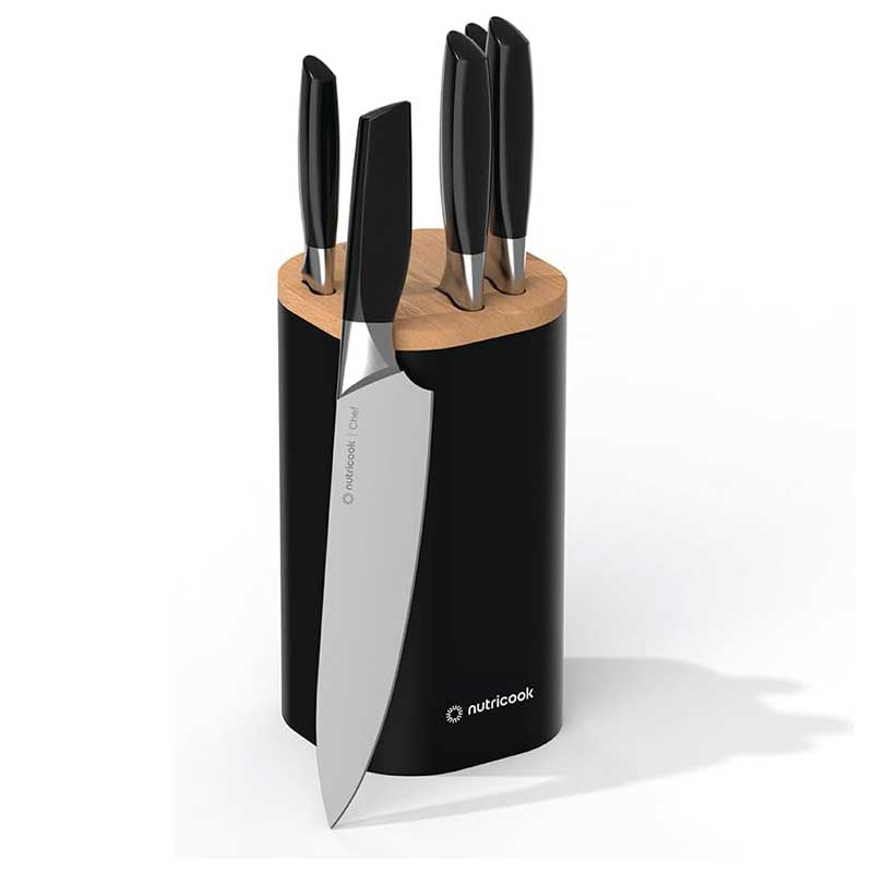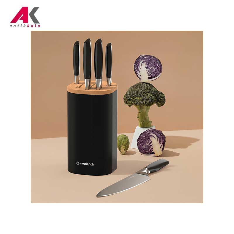 چاقوها دارای تیغه 2.5 میلیمتری استیل ,شیارهای چاقو برخوردار از فناوری تیزکن داخلی |