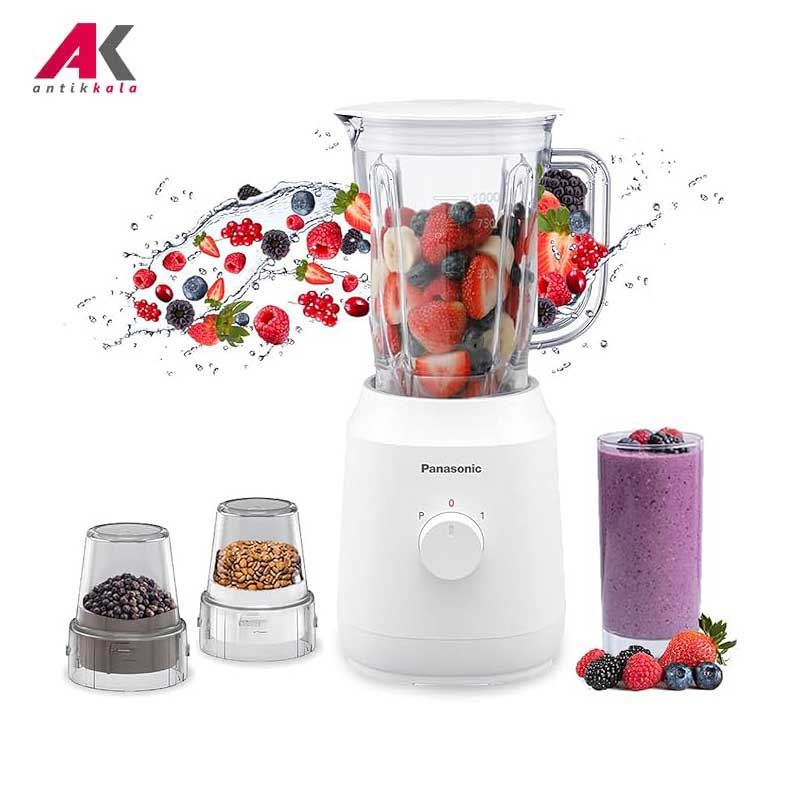 مخلوط کن پاناسونیک مدل PANASONIC MX-EX1081، دستگاهی با عملکرد دو کاره از تولیدات این برند است. موتور 450 واتی این مخلوط کن با تعداد تنظیم در دو سرعت به انضمام سرعت پالس برای انجام فرایندهای خاص قادر خواهد بود تا مواد غذایی شما را مخلوط یا آسیاب کند. این تنظیمات توسط کنترلر چرخشی تعبیه شده بر روی بدنه دستگاه به راحتی قابل اعمال است. وجود تیغههای 4 پره از جنس استیل با استحکام و دوام بالا در برابر سایش و همچنین تیزی قابل قبول و حفظ آن در مرور زمان استفاده، امکان خرد کردن و برش سختترین تهیه ترکیبی جذاب را مهیا میسازد. نیازی به تهیه آسیاب جداگانه نخواهید داشت؛ وجود دستگاه آسیاب خشک و تر کوچک شما را در آسیاب قهوه و یا انواع ادویه مثل فلفل و چیلی و سبزیجات و پیاز یاری خواهد کرد. در این آسیاب امکان تهیه 50 گرم پودر مواد غذایی وجود خواهد داشت. ظرفیت کارکرد پارچ شیشهای مخلوط کن PANASONIC MX-EX1081، به میزان 1.5 لیتر است. سطح شیشه این پارچ در برابر ایجاد خراش، بو، لکه و تغییر رنگ مقاوم میباشد. سیستم ایمنی دستگاه در هنگام عدم قرارگیری مناسب پارچ بر روی پایه، از عملکرد مخلوط کن جلوگیری میکند. طراحی زیبا و ساده در ابعادی جمع و جور این دستگاه را متناسب برای استفاده در هر دکوراسیونی از آشپزخانه کرده است. قابلیت شستشوی آسان برخی از قطعات مخلوط کن دیگر ویژگی این محصول به شمار میآید.