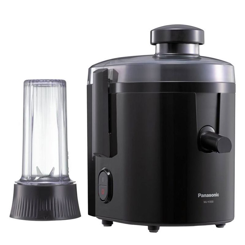 آبمیوه گیری تک سرعته پاناسونیک مدل MJ-H300 با طراحی ویژه و سبک جدید خود یکی از تولیدات این شرکت نام آشنا میباشد. آبمیوهگیری پاناسونیک با رنگ مشکی مات خود جلوه گر هر آشپزخانه ای است. توان مصرفی این دستگاه 400 وات است که مناسب برای آبگیری هر نوع میوه ای میباشد. قابل ذکر است که آبمیوهگیری MJ-H300 پاناسونیک دارای سیستم ضد چکه است که از چکه کردن آبمیوه جلوگیری میکند. همچنین با داشتن دهانه ورودی 58 میلیمتری میوه هایی همچون سیب را میتوان درسته و بدون نصف کردن برای آبگیری استفاده نمود. به همراه آبمیوه گیری 300 پاناسونیک یک مخلوط کن کوچک یا اسموتی ساز با حجم 0.5 نیز ارائه میشود که به شما امکان تهیه انواع نوشیدنی ها، غذای کودک و معجون … را میدهد.