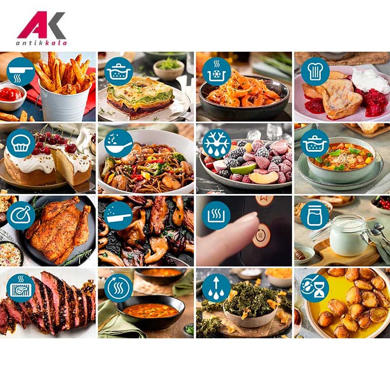 70 درصد صرفه جویی در مصرف انرژی ,Favorite: ذخیره برنامه پخت ,آشپزی تا 50 درصد سریع تر از روش های سنتی پخت ,ظرفیت 1400 گرم سبزیجات 10 عدد ران مرغ، 6 تکه ماهی سالمون یا 9 عدد مافین |