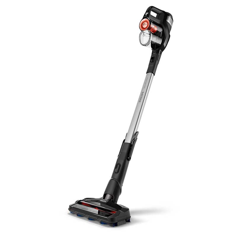 جاروشارژی فیلیپس مدل PHILIPS FC6722 از سری SpeedPro این برند فرایند نظافتی سریع و در عین حال قدرتمند را ارائه میدهد. این ابزار 2 در 1 قابلیت عملکرد به صورت دستی و ایستاده را دارا بوده تا بسته به نوع فرایند مورد نیاز در شرایط مختلف مورد استفاده قرارگیرد. باتری قدرتمتد لیتیوم-یونی دستگاه با ولتاژ 18 ولت انجام فرایند نظافت تا میزان 30 دقیقه را به آسانی مهیا میکند. ابزار جانبی موجود در این دستگاه به راحتی و با فشردن یک دکمه قابل تفکیک و جابجایی بوده؛ به وسیله این ابزار دسترسی به محیطهای مختلف و دور از دسترس جهت انجام نظافت به راحتی فراهم میشود. موتور PowerBlade تعبیه شده در این دستگاه با چرخش سریع هوا، جذب دقیق و هرچه بیشتر گرد و غبار را حاصل میشود که در دو سرعت قابلیت تنظیم را دارد. به لطف بهرهگیری از فناوری 7 PowerCyclone حرکت سریع و گذر با شتاب جریان هوا از سطح منحنی ورودی و جداسازی گرد و غبار از هوا، موجب افزایش عمر مفید دستگاه میشود. با تعبیه میکروفیلتر قابل شستشو تا میزان 99 درصد از مواد آلرژیزای محیط مانند گرد و غبار و موی حیوانات خانگی به دستگاه جذب شده تا هوایی سالم در اختیار شما قرار داه شود. مکانیزم حرکت دسته جاروشارژی FC6722 فیلیپس با انعطاف تا میزان 180 درجه امکان دسترسی و شعاع حرکتی آسان آن را بههمراه دارد و قادر به نظافت 98 درصدی گرد و غبار و آلودگیها از تمام سطوح خواهد بود. مخزن گرد و غبار 0.4 لیتری جاروشارژی فیلیپس مدل PHILIPS FC6722 حجم قابل قبولی از آلودگی را جذب کرده و در صورت پر شدن به راحتی قابل تفکیک و تخلیه میباشد.