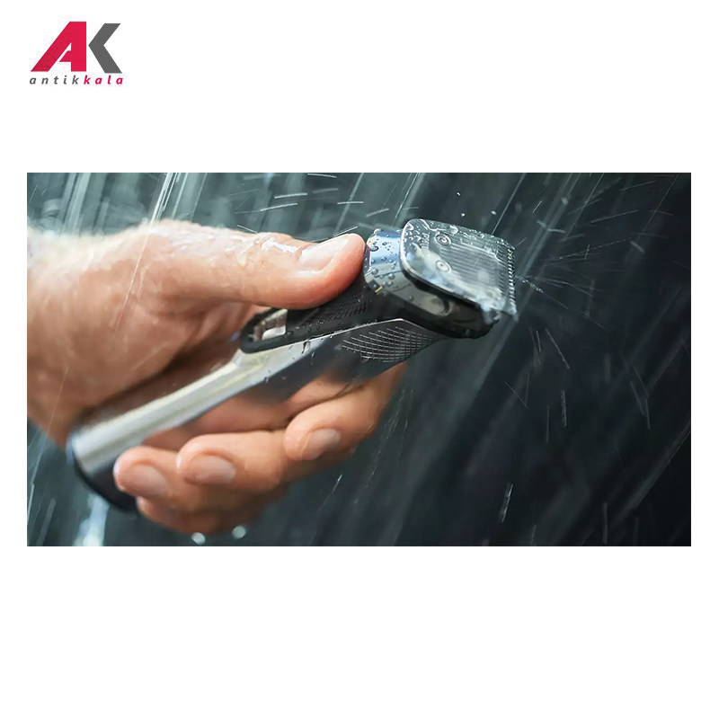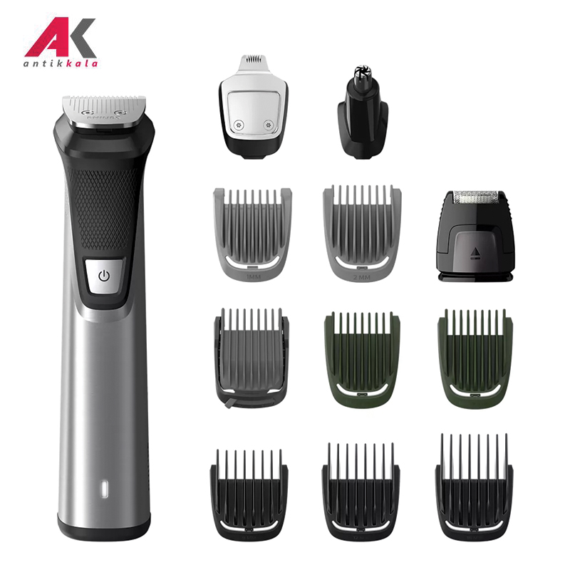 ماشین اصلاح فیلیپس مدل MG7735 با بهره گیری از 12 ابزار برتر شما را قادر میسازد تا سبک منحصر بفرد اصلاح خود را انتخاب کنید. فناوری DualCut تیغه ها عملکرد آن ها را تا 2 برابر نسبت به تیغه های یک طرفه بهبود بخشیده است که اثر بخشی آن پس از 5 سال استفاده به قوت خود باقی خواهد ماند. 12 ابزار موجود در اقلام ماشین اصلاح MG7735 کمک میکند روند آسانی در جهت اصلاح موی سر و صورت و داخل بینی و گوش و حتی بدن خود داشته باشید. تیغه های DualCut همچنین برای ایجاد خط ریش و خط موهای پشت گردن نیز انتخاب مناسبی هستند. دستگاه شامل 8 شانه برای اصلاح موهای سر و صورت و بدن از قبیل 2 شانه ریز 1 و 2 میلیمتری، 1 شانه مخصوص اصلاح ریش 3 تا 7 میلیمتری، 3 شانه اصلاح موی سر 9،12 و 16 میلیمتری و 2 شانه اصلاح موی بدن 3 و 5 میلیمتری میباشد. ماشین اصلاح فیلیپس MG7735 دارای باتری ای قدرتمند از نوع لیتیوم-یونی است که با هر بار شارژ کامل به مدت 1 ساعت، امکان استفاده به صورت بی سیم تا مدت زمان 120 دقیقه را دارد. طراحی ارگونومیک بدنه موجب خوش دست بودن و عدم لغزندگی دستگاه در حین استفاده شده است. ضد آب بودن تیغه های استیل و بدنه دستگاه امکان استفاده بی دغدغه از آن را در زیر دوش حمام و محیط روشویی و یا همچنین شستشو دستگاه زیر آب به راحتی مهیا میکند.