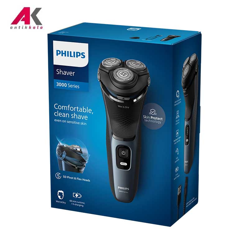 ریش تراش فیلیپس مدل S3144 از سری 3000 این برند معتبر در عرصه تولید ماشین اصلاح صورت آقایان است. به کمک این دستگاه خوشساخت میتوانید در مدت زمان کوتاه جلسات اصلاح روزانه خود را به انجام برسانید. در کنار برخورداری از ظاهری شکیل، طراحی این ریش تراش در ابعاد کوچک و وزن سبک و همچنین متریال مقاوم در برابر لغزندگی موجب شده تا قرارگیری دستگاه در دست به راحتترین صورت امکانپذیر باشد. اجزای اصلاح این محصول نیز مثل سایر مدلهای این برند از 3 حلقه با تیغههای استیل تشکیل شده که در ادامه به ویژگیهای دقیقتر آن خواهیم پرداخت. برخورداری از باتری لیتیومی قدرتمند، سری خط زن ثابت تعبیه شده در بخش پشتی ریش تراش و طراحی به صورت 100% ضدآب دیگر امکانات این ریش تراش فیلیپس را تشکیل میدهند.