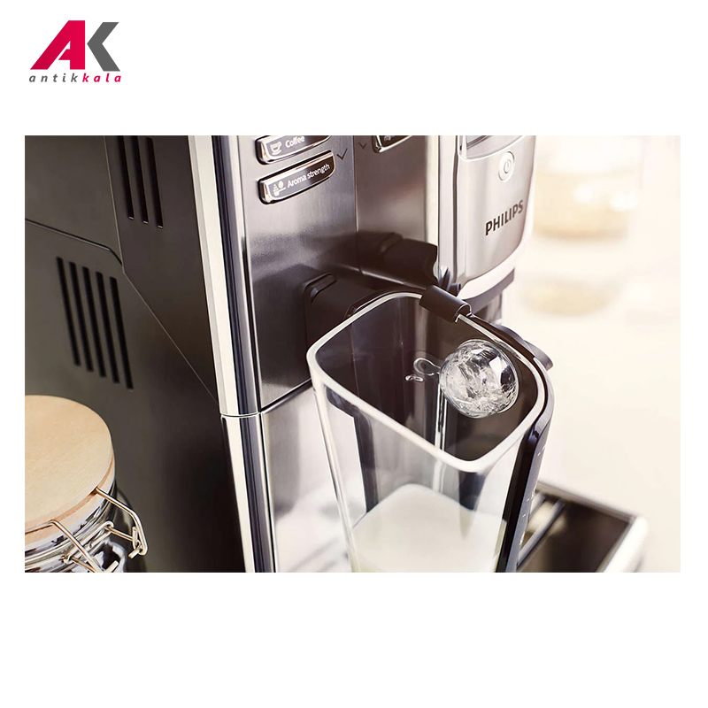 بهرهگیری از طراحی جذاب و تکنولوژیهای به روز از بارزههای اسپرسوساز فیلیپس مدل PHILIPS EP5333 هستند. از ابتداییترین فرایند تهیه یک فنجان قهوه یعنی آسیاب دانهها گرفته تا تهیه یک نوشیدنی خوش طعم همگی به کمک این دستگاه به صورت تمام اتوماتیک قابل انجام است. بهرهگیری این دستگاه از توان 1850 وات و مخزن آب 1.8 لیتری، به لطف وجود سیستم گرمایش بلوک حرارتی موسوم به Thermoblock تهیه نوشیدنی موردنظر با بالاترین کیفیت ممکن را تضمین میکند. امکانات متعدد این اسپرسوساز دست شما را برای اعمال انواع تنظیمات به طور کامل باز خواهد گذاشت؛ قدرت عطر، میزان آسیاب دانه قهوه و طول فرایند همگی به آسانی قابل انجام خواهد بود. تعبیه یک مخزن شیر 265 میلیلیتری موسوم به LatteGo به همراه میزان فشار بخار 15 بار از طریق همراه کردن شیر و هوا به وسیله سرعت بالا در این محفظه اقدام به تهیه کف شیری بسیار مطلوب و خوشطعم میکند. این امر به شما امکان تهیه انواع نوشیدنیهای مرکب از قهوه و شیر همچون کاپوچینو و لاتهماکیاتو را خواهد داد. با توجه به امکان تفکیک این مخزن از دستگاه، شستشوی این قطعه تنها در 15 ثانیه و به راحتی قابل انجام است. به لطف وجود فناوری CoffeeSwitch امکان تهیه هرنوع قهوه برای هر وعده، از صبحانه گرفته میان وعده به طور تمام اتوماتیک و تنها با فشردن یک دکمه فراهم است؛ پنل دکمهای دستگاه شامل 6 برنامه پیش فرض برای تهیه انواع نوشیدنی قهوه است؛ تنها با فشردن یک دکمه انواع نوشیدنی و بهترین سطح کیفی را در کوتاهترین زمان ممکن تهیه خواهید کرد. جنس مخزن آسیاب دستگاه از سرامیک بادوام بوده که با حفظ عطر طبیعی قهوه حاضر است تا میزان 20000 فنجان پودر قهوه را تهیه کند. میزان آسیاب دانههای قهوه بسته به مقدار دلخواه شما در 5 درجه قابل تنظیم خواهد بود. وجود دو نازل امکان تهیه دو فنجان قهوه را مهیا میکند. این نازلها بسته به میزان ارتفاع فنجان و یا لیوان شما قابل تنظیم بوده که این امر از پاشیدن نوشیدنی به خارج از سطح فنجان جلوگیری میکند. نگران وجود رسوب در آب نباشید؛ تعبیه فیلتر AquaClean در مخزن آب موجب شده این قطعه نیازی به رسوب زدایی مداوم دستگاه نداشته و همواره آب را شفاف نگه میدارد بطوریکه تا حداکثر 5000 فنجان احتیاجی به فرایند رسوب زدایی نخواهد داشت. همچنین عملکرد خودکار دستگاه با قابلیت تنظیم میزان سختی آب شما را در مواقعی که دستگاه نیازمند انجام رسوب زدایی است، مطلع خواهد کرد. وجود صفحه گرم نگهدارنده فنجانها، سیستم ذخیره انرژی و نظافت آسان دستگاه به لطف قابلیت تفکیک قطعات و امکان شستشوی آنها در ماشین ظرفشویی از دیگر امکانات اسپرسوساز فیلیپس مدل PHILIPS EP5333 به شمار میآید.