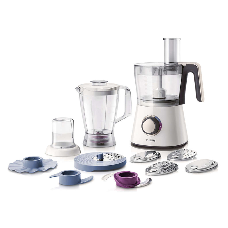 غذاساز فیلیپس دارای یک آسیاب کوچک جهت آسیاب نمودن دانه های قهوه، ذرت و فلفل خشک می باشد. با استفاده از آسیاب فیلیپس همچنین می توان مغزها و ادویه جات را آسیاب و پودر کرد. این دستگاه دارای پارچ نشکن مدرج مخلوط کن به ظرفیت 1.75 لیتر (1 لیتر در هنگام استفاده) است که برای تهیه انواع آبمیوه و نوشیدنی های خنک و خوشمزه می توان از آن استفاده نمود.