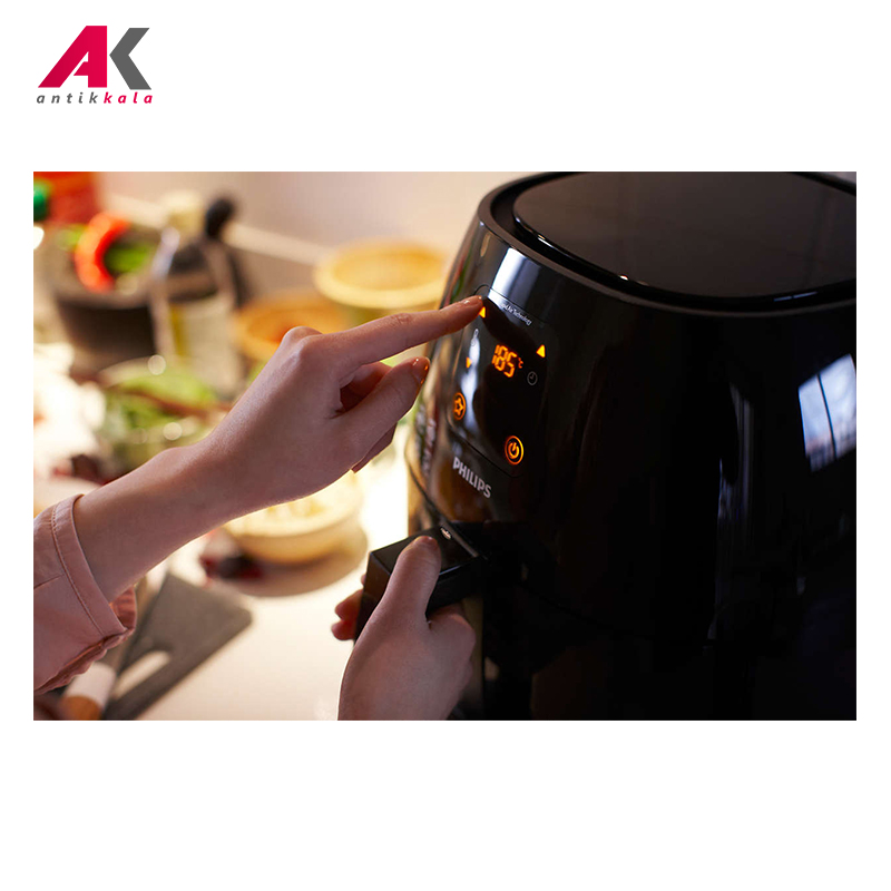 تهیه و طبخ غذا با حداقل میزان روغن مصرفی و گردش حرارت تا 7 ثانیه سریعتر از مدلهای پیشین با بهره گیری از تکنولوژی Rapid Air، دو مورد از مهم ترین ویژگی های سرخ کن فیلیپس مدل HD9240 است. به سبب گردش سریع حرارت در این سرخ کن کاهش 80 درصدی میزان روغن مصرفی در فرایند طبخ ایجاد میشود. این سرخ کن 2075 واتی دارای کاسه ای با ظرفیت 1.2 کیلوگرم است که امکان تهیه وعده برای ظرفیت 5 نفر را مهیا میکند. فناوری Rapid Air سبب گردش 7 برابر سریعتر حرارت داخل سرخ کن میشود که این امر موجب مغز پخت شدن مواد غذایی و همچنین تُرد شدن آن ها خواهد شد. همچنین این امکان سبب شده تا از پیچیدن بو در داخل آشپزخانه جلوگیری شود. این حرارت ورودی در سرخ کن فیلیپس HD9240 موجب شده تا غذای شما 1.5 برابر سریعتر از فر طبخ و آماده شود. با HD9240 امکان پخت و سرخ کردن مواد غذایی همچون سییب زمینی، اسنک، مرغ، جوجه، همبرگر، سوسیس، گوشت، ماهی، کیک، مافین، نان تست، سبزیجات و … را خواهید داشت. علاوه بر این میتوانید تنظیمات مربوط به غذای مورد علاقه خود را در داخل پنل ذخیره کنید تا در موارد استفاده های بعدی به راحتی با فشار دادن یک دکمه به همان تنظیمات بازگشته و در اسرع زمان به تهیه غذای خود بپردازید. وجود صفحه کنترل با دکمه های لمسی تجربه ای کاربری آسانی را در جهت کنترل زمان و درجه حرارت و تهیه غذا در اختیار شما قرار میدهد. جدا سازی راحت قطعات سرخ کن از هم و نچسب بودن کاسه امکان انجام فرایند شستشو حتی در ماشین ظرفشویی را برای شما تسهیل میکند.