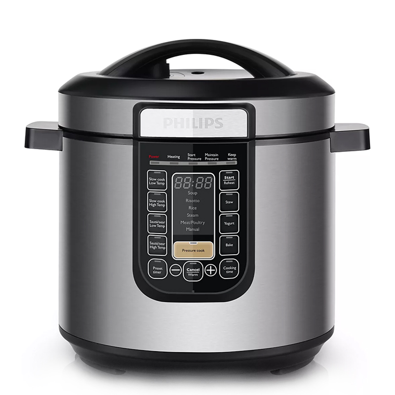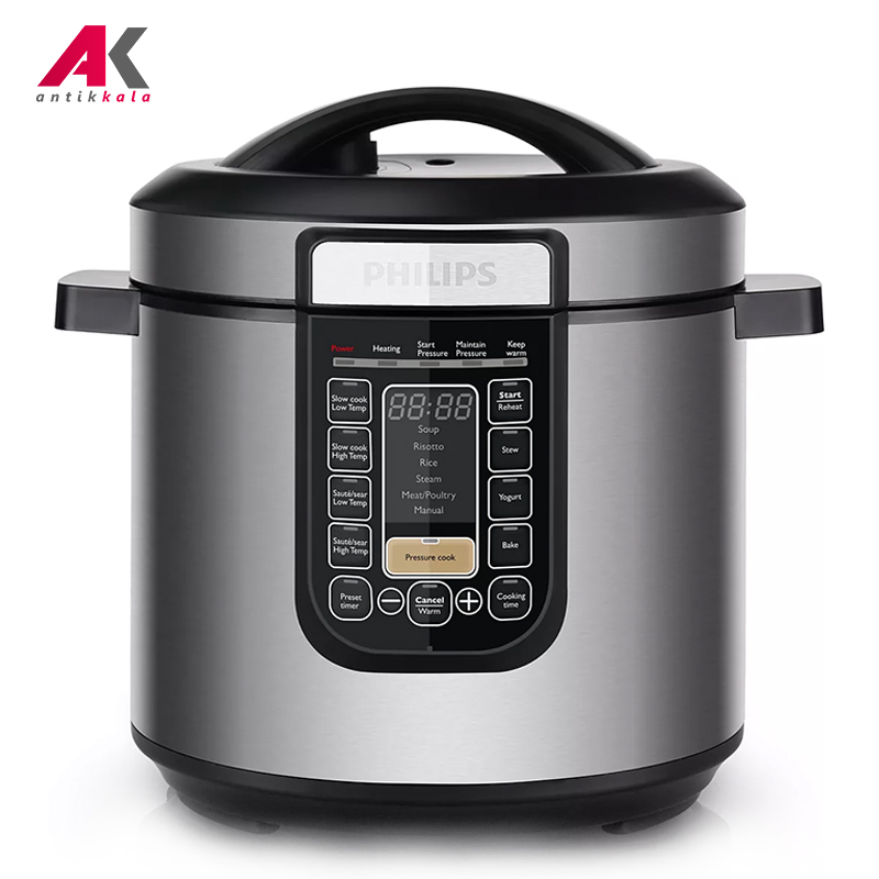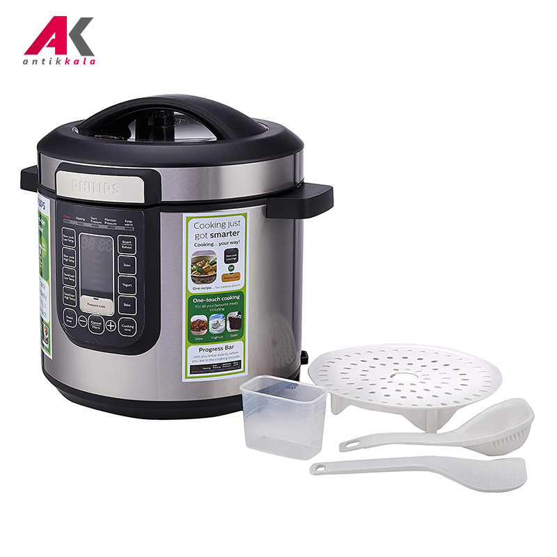 مولتی کوکر فیلیپس مدل PHILIPS HD2137، با بهره گیری از سیستم پخت هوشمند با توان مصرفی 1000 واتی قادر به انجام عملکردهای متنوع میباشد. وجود 9 سیستم حفاظت ایمنی برای اطمینان از پخت و پز، دستیابی به نتایج دلنشین و مدنظر شما را تضمین میکند. کاسه درونی مولتی کوکر 2137 از جنس آلیاژ آلومینیوم بوده بنابراین در انتقال حرارت مؤثر تر عمل خواهد کرد. همچنین وجود روکش طلایی رنگ ویژه از ایجاد خط و خش بر روی کاسه درونی مولتی کوکر جلوگیری خواهد کرد. تایمر تعبیه شده بر روی دستگاه با رابط کاربری ساده امکان تنظیم برنامه ریزی پخت و پز را به آسانی مهیا میکند. منوی دستگاه شامل 14 برنامه پیش فرض برای انجام فرایندهایی از قبیل پخت انواع غذا، تهیه دسر، تعیین رویه دمایی پخت و تعیین رویه دمایی تفت میباشد که شما را در تهیه غذای مدنظر خود در کوتاه ترین زمان ممکن یاری خواهد کرد. عملکردهای مولتی کوکر HD2137 بوش شامل پلوپز، بخارپز، آرام پز و زودپز میباشد. قابلیت گرم نگهداشتن مواد غذایی تا 12 ساعت، آزاد کردن فشار در صورت وجود حدی غیر عادی از فشار در داخل محفظه مولتی کوکر، پخت آهسته با درجه حرارت بالا و پایین تا 12 ساعت و شستشو و قابلیت تفکیک قطعات و شستشوی آسان آنها از دیگر ویژگی های مولتی کوکر فیلیپس مدل PHILIPS HD2137 هستند.