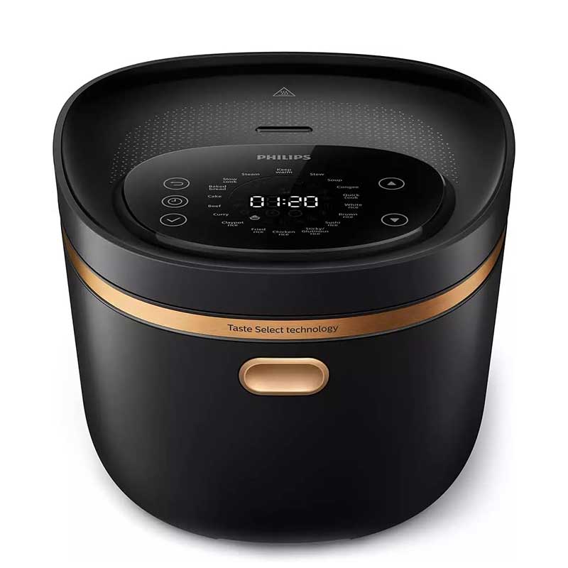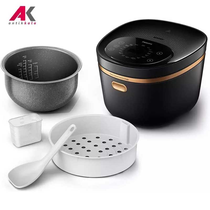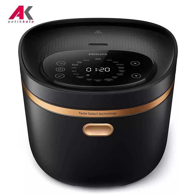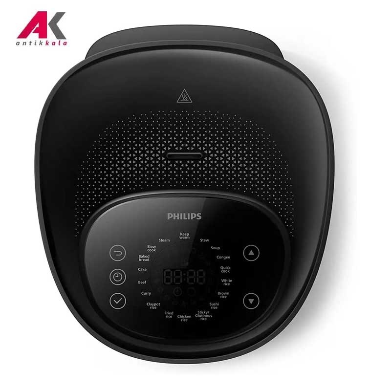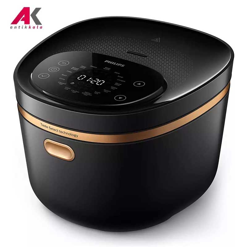 این محصول به لطف بهره گیری فناوری Taste Select با مدیریت فرایند پخت و پز و اعمال سیستم گرمایش هوشمند برای تعیین دما و زمان متناسب با ذائقه های متنوع در کنار برخورداری از توان مصرفی 1250 واتی قادر است فرایندهای متنوع را با ارائه بهترین کیفیت به انجام برساند. کاسه درونی این مولتی کوکر از جنس سرامیک نچسب 8 لایه ضدخش Maifanshi است که علاوه بر تضمین کیفیت پخت، در انتقال حرارت نیز مؤثرتر عمل میکند. تایمر تعبیه شده بر روی دستگاه با رابط کاربری ساده امکان تنظیم برنامه ریزی پخت و پز را به آسانی مهیا میکند. منوی دستگاه شامل 18 برنامه پیش فرض برای انجام فرایندهایی از قبیل بخارپز، خورشت، گرم نگهدارنده، سوپ، آرام پز، کیک، پخت نان، گوشت، کته، برنج سفید، برنج قهوه ای، پخت سریع، سوشی، برنج و مرغ، کاری، برنج سفالی، برنج شفته و برنج سرخ شده بوده که شما را در تهیه غذای مدنظر خود در کوتاه ترین زمان ممکن یاری خواهد کرد. همانطور که گفته شد این مولتی کوکر عملکردهای اصلی پخت یعنی پلوپز، آرام پز و بخارپز را در اختیار شما قرار میدهد. قابلیت گرم نگهداشتن مواد غذایی، آزاد کردن فشار در صورت وجود حدی غیر عادی از فشار در داخل محفظه مولتی کوکر و شستشو و قابلیت تفکیک قطعات و شستشوی آسان آنها از دیگر ویژگیهای این مولتی کوکر فیلیپس هستند.