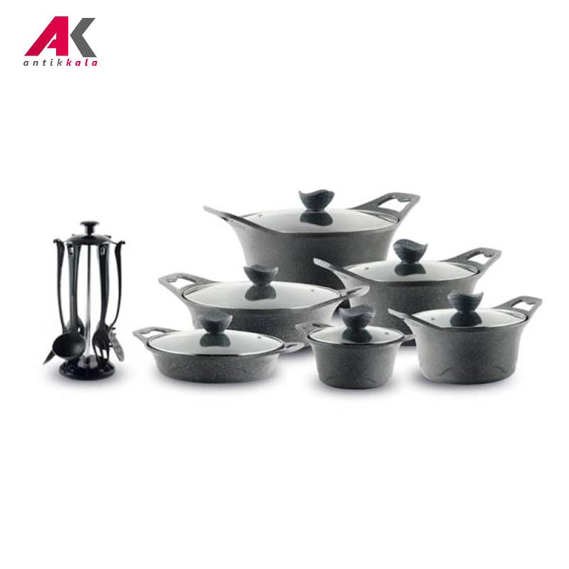 6 عدد: ملاقه – کفگیر – چنگال – قاشق – دو قاشق برای سالاد ,قطعه نگهدارنده قاشق، چنگال و ملاقه |