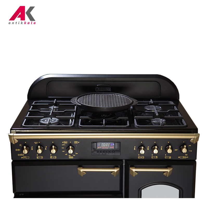 صفحه نمایشگر دیجیتال 6 کلیده و مجهز به کنترل زمانی شعله های فوقانی ,فن خنک کننده سطوح ,قابلیت پخت همزمان در هر سه محفظه فر ,مجهز به چرخ های عقب اجاق جهت سهولت در جابجایی |
