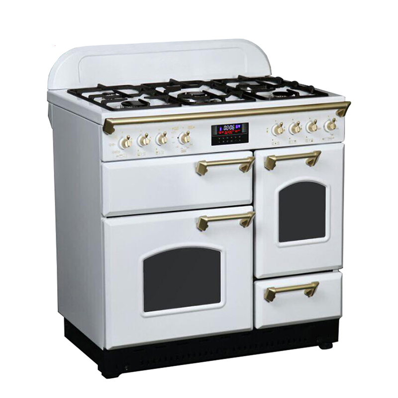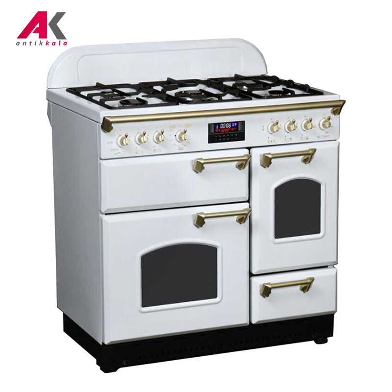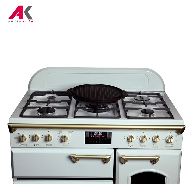 صفحه نمایشگر دیجیتال 6 کلیده و مجهز به کنترل زمانی شعله های فوقانی ,فن خنک کننده سطوح ,قابلیت پخت همزمان در هر سه محفظه فر ,مجهز به چرخ های عقب اجاق جهت سهولت در جابجایی |