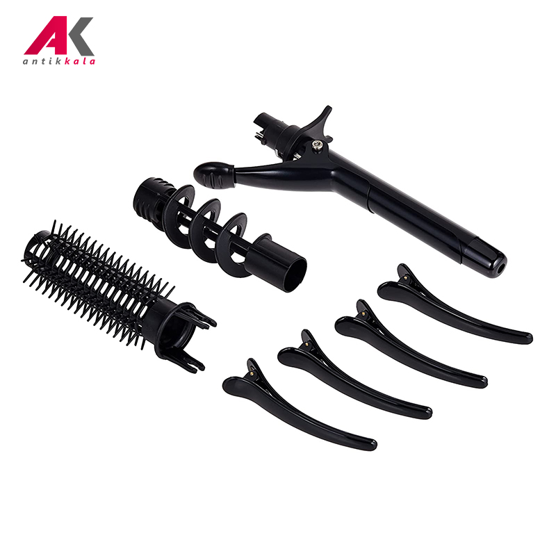 سری استوانه ای 19 میلیمتری برای حالت دادن و فر کردن مو ,سری برسی شکل برای استفاده به عنوان برس گرمایی و موج و حجم دادن به موها ,سری تخت برای صاف کردن مو ,سری مارپیچی برای حالت دهی به موها (برای فر حالت سیم تلفنی) ,سری ویو برای حجم دادن و موج دار کردن مو |