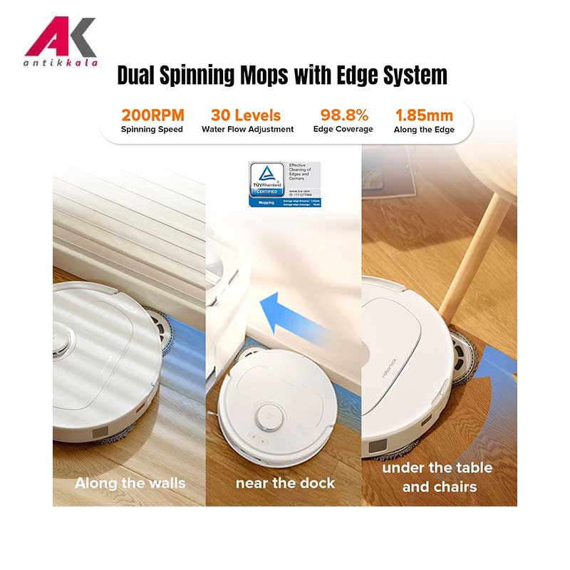 بالا رفتن خودکار موپ پدها به محض ورود جارو رباتیک روی سطح فرش ,طراحی باریک برای دسترسی آسان به فضای زیر پایه مبلمان و تخت و پارتیشن ها ,قابلیت اتصال به گوشی هوشمند ,نظافت بدون نیاز به تخلیه تا 7 هفته ,امکان استفاده آفلاین و پشتیبانی از 18 زبان مختلف (برای شروع دستور نظافت عبارت Hello Rocky را بگویید) ,امکان برقراری تماس تصویری از راه دور با جارو رباتیک و گشت زنی در خانه (برای زیر نظر داشتن حیوانات خانگی) ,امکان تنظیم 30 حالت مقدار آب برای شستشو ,بالا رفتن خودکار موپ پدها تا 10 میلیمتر به محض ورود ربات روی فرش برای جلوگیری از تماس ,تخلیه خودکار مخزن توسط پایه بعد از هربار انجام فرایند نظافت |