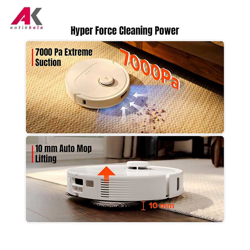 AI-Powered Customization: بهره گیری از هوش مصنوعی برای تشخیص دقیق محیط، میزان کثیفی و اولویت های نظافتی ,فناوری FlexiArm گرد و غبار و آلودگی را حتی در کناری ترین بخش دیوارها به درون برس اصلی هدایت کرده و تمیز می کند ,قدرت مکش HyperForce گرد و غبار و آلودگی را از روی سطوح مختلف پاک می کند |