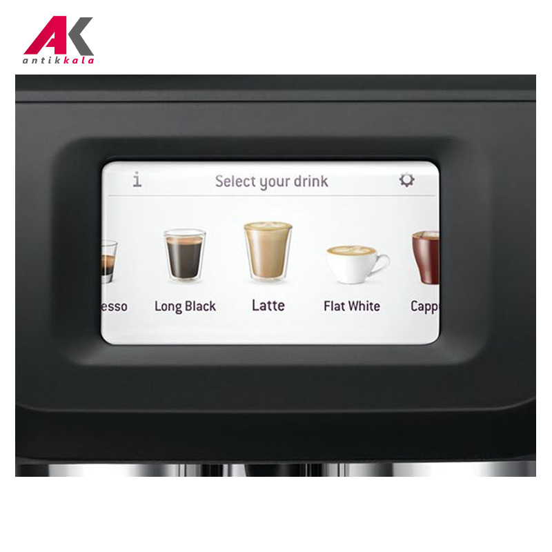 5 نوشیدنی با لمس از روی نمایشگر شامل: اسپرسو، لاته، لانگ بلک، فلت وایت، کاپوچینو ,راهنمای راه اندازی – نظافت – دمای قهوه – تنظیم دمای شیر – سختی آب – حالت دمو – تنظیم صدا و هشدار دستگاه – روشنایی تصویر – تنظیمات کارخانه ,عملکرد Hot Water: برای گرم کردن فنجان ها یا افزودن دستی آب گرم ,قابلیت برنامه ریزی جهت تهیه یک فنجان و یا 2 فنجان قهوه |