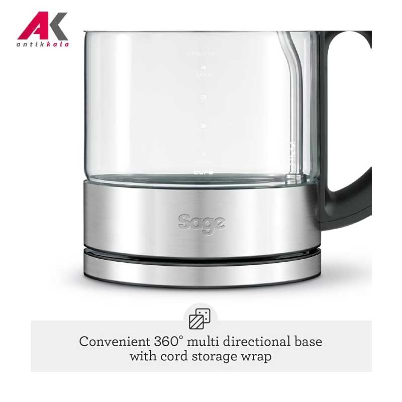 برخورداری از ابعاد کوچک برای یک کتری برقی به دلیل وجود محدودیت فضا گاها یک ویژگی محسوب میشود. کتری برقی سیج مدل BKE395UK به لطف طراحی مینیمال و همچنین ظرفیت 1 لیتری به شما کمک میکند که علاوه بر اشغال کوچکترین فضا روی پیشخان آشپزخانه، حجم مناسبی از آب جوش برای یک جمع خودمانی کوچک در اختیار شما قرار بگیرد. کفی داخلی استیل این کتری به همراه فیلتر ضد رسوب سبب حفظ اصالت طعم آب جوش تهیه شده میشود و از طرفی از ورود آهک و سایر مواد مضر از دهانه خروجی کتری جلوگیری میکند.