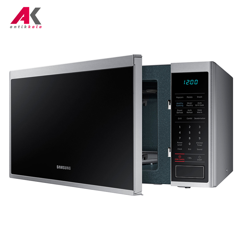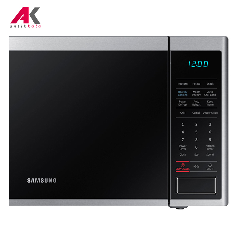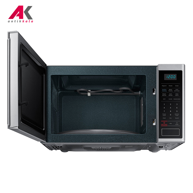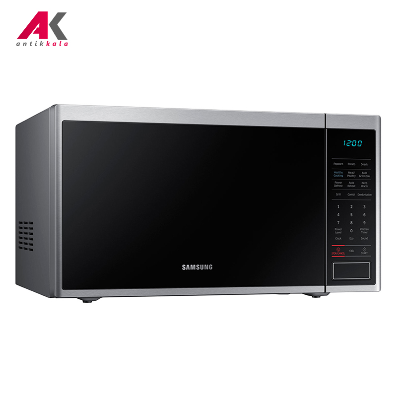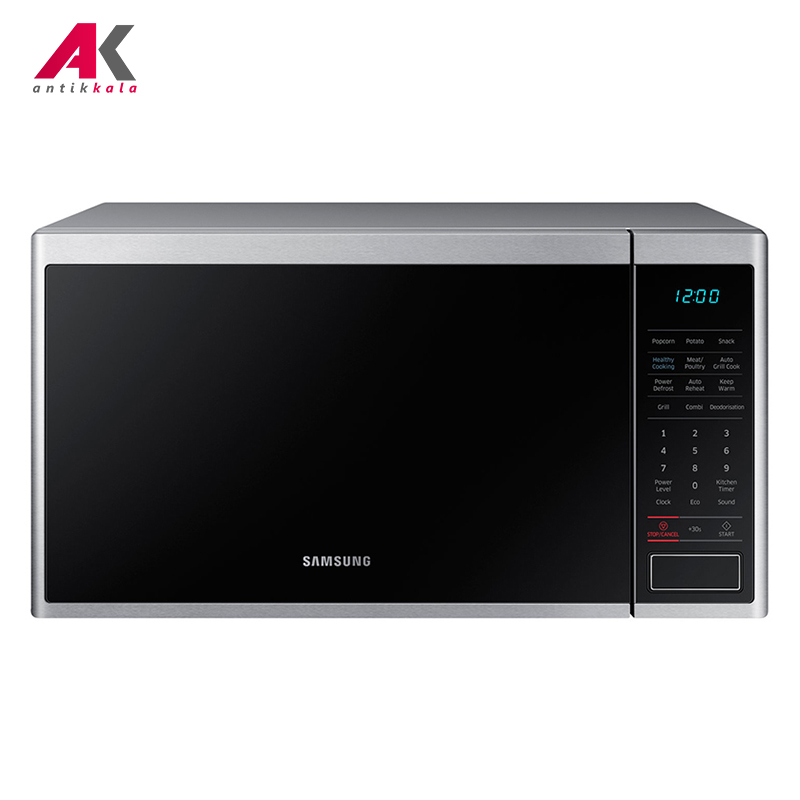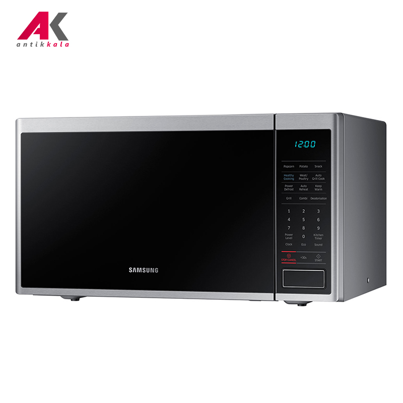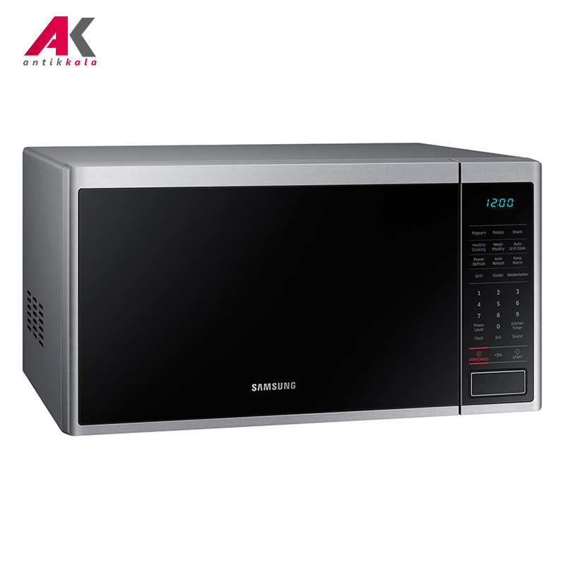 مایکروویو سامسونگ مدل MS40J5133AT محصولی با کیفیت از این شرکت است که دارای ظرفیت 40 لیتر می باشد. پخت ترکیبی از امکانات ویژه این دستگاه می باشد. عملکرد مایکروفر علاوه بر گرم کردن برای پخت مواد غذایی هم استفاده می شود، با کم و زیاد کردن توان مایکروفر تا 1000 می توانید حرارت را کم و زیاد کنید. عملکرد گریل باعث برشته کردن و سرخ کردن سطح و کف غذاهایی مثل سوسیس، نان تست، همبرگر و … می شود. محفظه سرامیکی مایکروویو MS40J5133AT ضد خش، ضد زنگ زدگی و ضد باکتری است و به دلیل داشتن سطح فوق العاده صاف، این امکان را فراهم می کند که روغن و چربی به آسانی از دیواره های داخلی تمیز شوند. قابلیت یخ زدایی (Defrost) باعث می شود که مواد غذایی یخ زده خیلی سریع و یکنواخت یخ زدایی شوند و به حالت تازه قبل از یخ زدن برگردند. حالت اقتصادی (Eco) تا 40 درصد انرژی بیشتری را در حالت استندبای ذخیره میکند و باعث صرفه جویی در مصرف انرژی می شود. این محصول از دسته مایکروویو های رومیزی است. دکمه های این دستگاه فشاری لمسی است و درب آن با فشار دادن یک دکمه باز می شود. مایکروویو MS40J5133AT دارای صفحه نمایشگر LED می باشد.