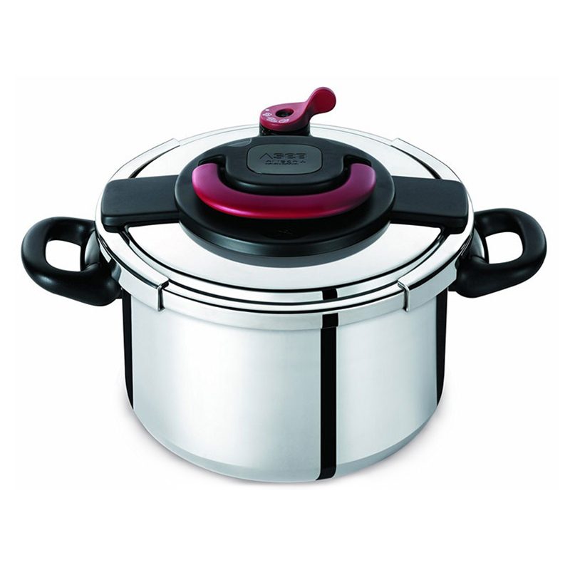 زودپز 6 لیتری سب مدل SEB CLIPSO PLUS، با جنس بدنه ای از استیل ضد زنگ و با دیزاینی جذاب از تولیدات این برند ساخت کشور فرانسه است. درب تعبیه شده بر روی زود پز دارای قابلیت باز شدن به صورت اهرمی بوده که وجود درپوش در قسمت بالایی آن، در زمان وجود بخار بالا و غیر قابل تحمل امکان تخلیه بخار را به راحتی و به سرعت مهیا میسازد. این زود پز با اعمال فشار و حرارت مناسب قادر به پخت انواع مواد غذایی با بافت های متفاوت همچون انواع گوشت، برنج، خورشت و … خواهد بود. همچنین وجود 2 برنامه پیش فرض در زودپز شما را در پخت انواع مواد غذایی با حفظ طعم و خواص اصلی آن ها یاری میکند. باز شدن آسان درب با یک دست، قابلیت استفاده بر روی انواع اجاق ها، جنس چدنی کف زودپز، وجود 3 دستگیره تاشو و 5 عملکرد برای حفظ ایمنی به وسیله سوپاپ ایمنی از جمله ویژگی های زودپز 6 لیتری سب مدل SEB CLIPSO PLUS هستند.