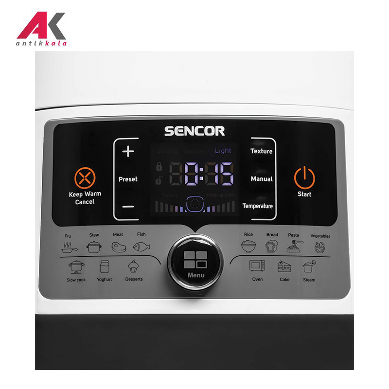 مولتی کوکر سنکور مدل SENCOR SPR 3600WH، با توان مصرفی 1000 وات با ارائه چندین عملکرد کارای پخت و پز از تولیدات این برند باکیفیت به شمار میآید. عملکرد پخت و پز در این دستگاه در عین صرفه جویی در مصرف انرژی تا میزان 50 درصد در مقایسه با مدل های پیشین سریع تر و کارآمدتر است. با وجود حجم کاسه 5 لیتری امکان تهیه وعده تا 10 نفر به راحتی و بدون نگرانی برای شما فراهم است. در کنار انجام عملکردهای اصلی همچون آرامپز، بخارپز، پلوپز و سرخکن، وجود 14 برنامه پیش فرض در پنل کاربری این دستگاه امکان انجام طبخ انواع متنوع غذا را به راحتی و در اسرع زمان مهیا کرده است. وجود صفحه کاربری دکمه ای در کنار یک نمایشگر LCD، کنترل تنظیماتی اعم از دما و سایر عملکردها و برنامه های دستگاه را به آسانی میسر کرده است. بهره گیری از امکاناتی چون سیستم ایمنی جلوگیری از کار کردن بدون آب و داغ شدن بیش از حد دستگاه، قابلیت گرم نگهدارنده، بهره گیری از سنسورهای داخلی جهت تنظیم مداوم دما، تنظیم هوشمندانه فشار داخلی و دربی دارای قفل هوشمند که امکان شروع فرایند را تنها با قفل بودن خود میدهد از دیگر امکانات مولتی کوکر سنکور مدل SENCOR SPR 3600WH به حساب میآیند.