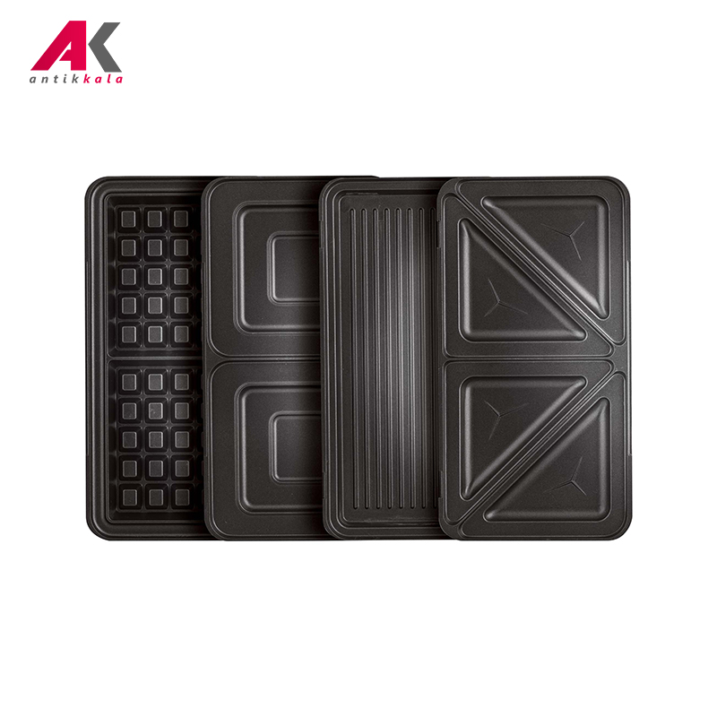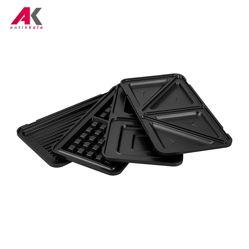 2 صفحه ساندویچ ساز 2 خانه مربعی شکل ,2 صفحه ساندویچ ساز 4 خانه مثلثی شکل ,2 صفحه گریل ,2 صفحه وافل ساز |