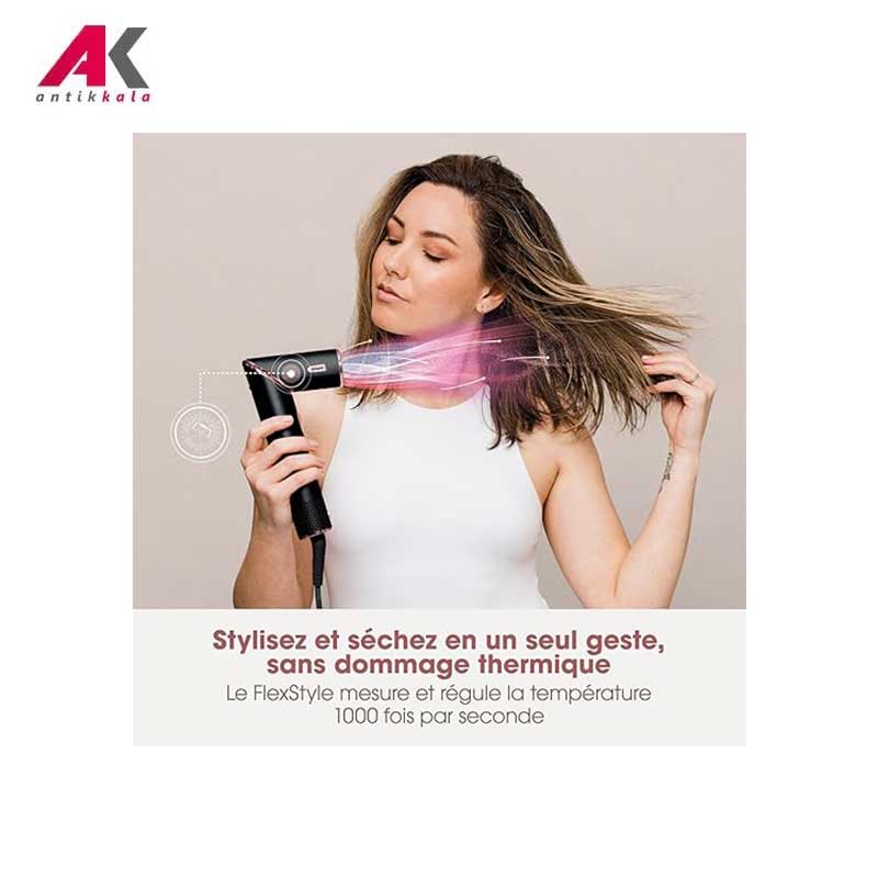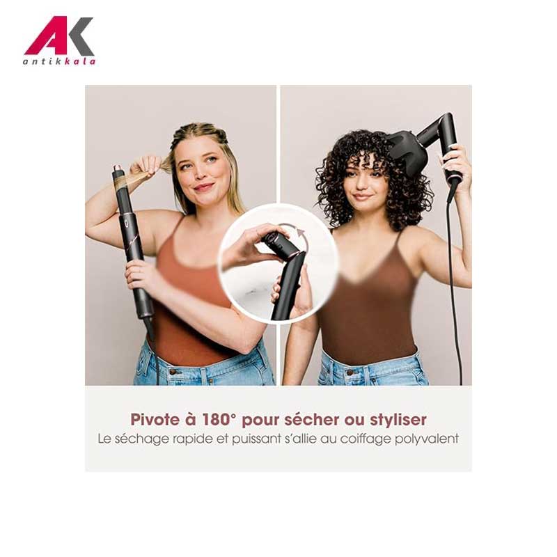 استفاده روزانه و آسان از سشوار به لطف طراحی فشرده، وزن کم و موتور کم صدا ,امکان چرخش در دو جهت با استفاده دو نازل ساعتگرد و پادساعتگرد ,خم شدن دسته برای استفاده به صورت سشوار |