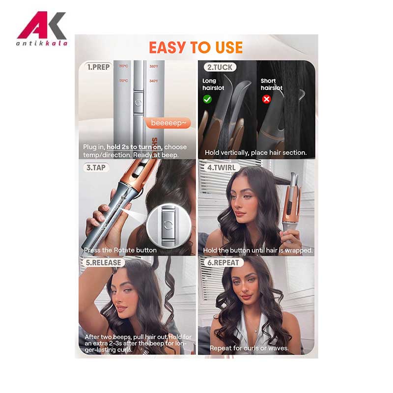 برخورداری از دکمه جهت برای چرخش سری فرکننده ,برخورداری از هشدار صوتی (2 بوق) بعد از هربار فر کردن بخش های مو ,دارای عملکرد چرخش دو طرفه ,طراحی سری فرکننده به صورت مقاوم در برابر حرارت ,فر کردن تمام موهای سر در 10 دقیقه |