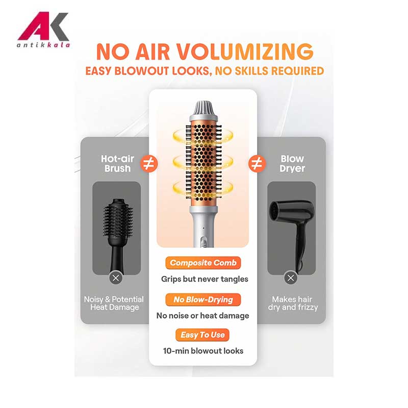 جلوگیری از شکستن مو با ممانعت از گره خوردگی – حالت دهی مو – حجیم کردن مو – خشک کردن بسیار سریع مو |