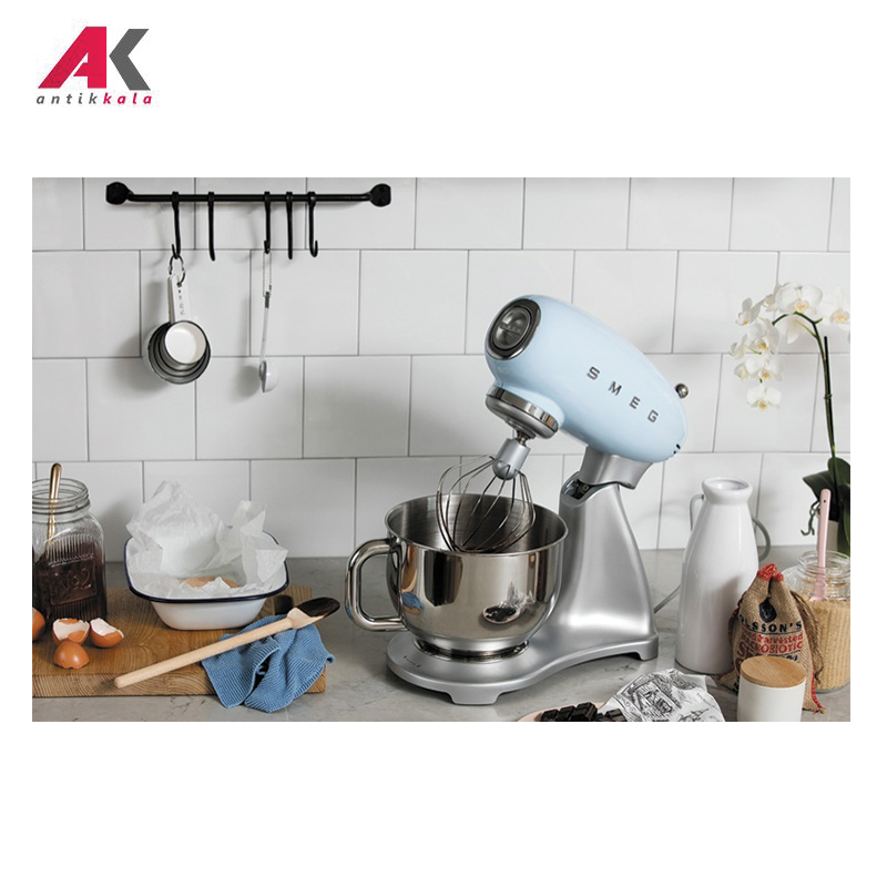 همزن برقی اسمگ مدل SMF02PBUK با طراحی جذاب و رنگبندی زنده، روحیه خلاق و اشتیاق شما به آشپزی را بیش از همیشه به کار میاندازد. این میکسر ایستاده جمعوجور با اشغال کمترین فضای ممکن در آشپرخانه راحتی در نگهداری را نیز بههمراه دارد. این دستگاه سه کاره، طیف قابل توجهی از فرایندهای موردنیاز آشپزی را پوشش میدهد و شما را از خرید تجهیزات اضافی بینیاز میکند.طراحیهای کلاسیک، رنگبندیهای خاص و چشمنواز از بارزههای همیشگی محصولات اسمگ بوده که همواره موجب جلب نظر مخاطبین این برند محبوب شده است. موتور این همزن کاسه دار Direct Drive و دارای عملکرد قابل قبول بوده که در 10 سرعت قابل تنظیم است. حرکت سیارهای شکل همزن موجب ایجاد ترکیبی یکنواخت خواهد شد. بااینحال ساختار فلزی مقاوم میکسر با کنترل میزان لرزش، ایمنی انجام فرایند را افزایش میدهد. کاسه استیل ضدزنگ همزن SMF02 دارای ظرفیت 4.8 لیتری بوده که امکان تهیه ترکیبات تا مقادیر قابل قبولی را مهیا میکند. علاوه بر قابلیت تنظیم فرایند در 10 سرعت متفاوت، به لطف عملکرد SMOOTH START شروع به کار همزن با حداقل سرعت ممکن صورت میگیرد تا از سرریز شدن و پاشیدن مواد غذایی به خارج از کاسه جلوگیری شود. بهرهگیری از لوازم جانبی متنوع از جمله 3 سری بهمنظور انجام تهیه مواد غذایی مختلف، سیستم جلوگیری از داغ شدن بیش از حد موتور، سیستم جلوگیری از داغ شدن بیش از حد موتور، قفل ایمنی هنگام خم شدن سر دستگاه و قابلیت شستشوی قطعات در ماشین ظرفشویی دیگر امکانات همزن برقی اسمگ مدل SMEG SMF02PBUK محسوب میشود.