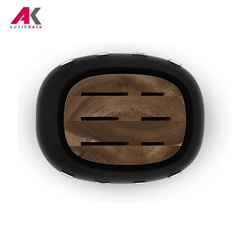 بلوک 6 عددی چاقو، با طراحی از متریال استیل کربنی با پوشش پولیش و چوب اقاقیا |