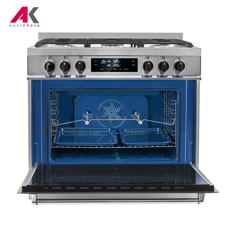 اندازهگیری دقیق دمای فر ,تکنولوژی نانو کلین (Nano Clean): مانع جذب چربی بر روی سطوح پخت و پز، تمیز نمودن سریع رویه و شیشه های اجاق گاز ,دارای 2 موتور جوجه گردان ,سرشعله های طرح ساباف (Sabaf) ,قابلیت تنظیم زمان هشدار ,نمایش دیجیتال دمای محفظه فر ,هات پلیت یک تکه |
