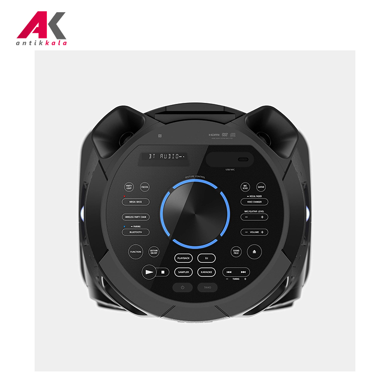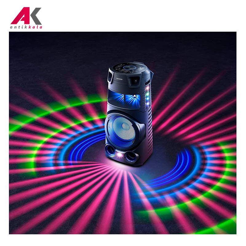 سیستم صوتی سونی مدل MHC-V73D به شما امکان تجربه حضور در DanceFloor را، با کیفیت پخش صدای بینظیر خود میدهد. بهوسیله این دستگاه صدای با کیفیت و موج قدرتمند و کوبنده آهنگ مورد علاقه خود را لمس کنید، پخش صدا از همه جهات به صورت همزمان انجام میشود تا بهترین تجربه را برای شما و عزیزانتان رقم بزند. با این محصول بهترین میهمانیها و مجالس را برگزار کنید و از نور پردازی فوق حرفهای و گستره پخش صدای بینظیر آن نهایت لذت را ببرید. قابلیت اتصال Bluetooth، USB، Radio، HDMI بهوسیله این محصول ممکن شده است و تماشای فیلم از طریق DVD player بکار گرفته شده در این دستگاه قابل انجام است. همچنین قابلیت اتصال کابل HDMI نیز وجود دارد و شما میتوانید با اتصال این کابل به تلویزیون از تماشای فیلم و سریال مورد علاقه خود با این سیستم صوتی منحصر به فرد نهایت لذت را ببرید.