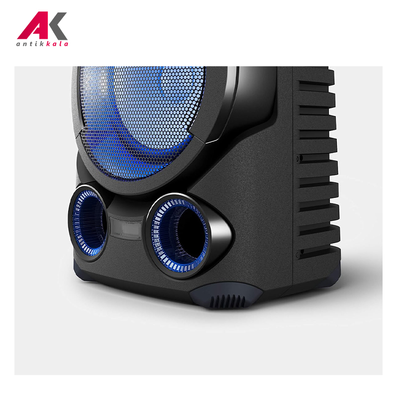 بکارگیری از 4 عدد توئیتر که رو به بالا قرار داده شده است و از Horn Tweeters استفاده میکند، موجب شده است تا صدای بسیار واضح و رسا برای شما پخش بشود. Horn Tweeters یک اسپیکر است که به شکل یک بوق طراحی شده است و موجب بدست آمدن صدای بلند و واضح میشود که شما میتوانید صدای تولید شده را از مسافت طولانیتر به صورت واضح و با کیفیت بالا گوش دهید. بکار گرفتن از 2 توئیتر در قسمت جلویی دستگاه و 2 عدد دیگر در قسمت پشت آن باعث افزایش سطح صدا و فشار صدای خروجی از جلوی دستگاه شده است. صدای موسیقی خود را به محیط اطراف خود با هر سطحی که مورد نظر شما است برسانید و از کیفیت بالای آن بهره ببرید.