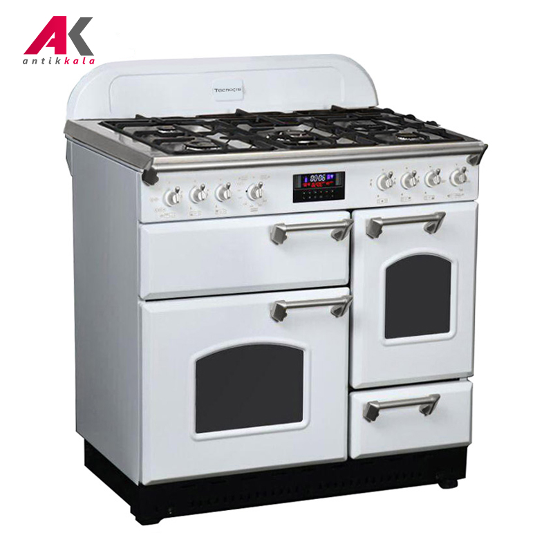 صفحه نمایشگر دیجیتال 6 کلیده و مجهز به کنترل زمانی شعله های فوقانی ,فن خنک کننده سطوح ,قابلیت پخت همزمان در هر سه محفظه فر ,مجهز به چرخ های عقب اجاق جهت سهولت در جابجایی |