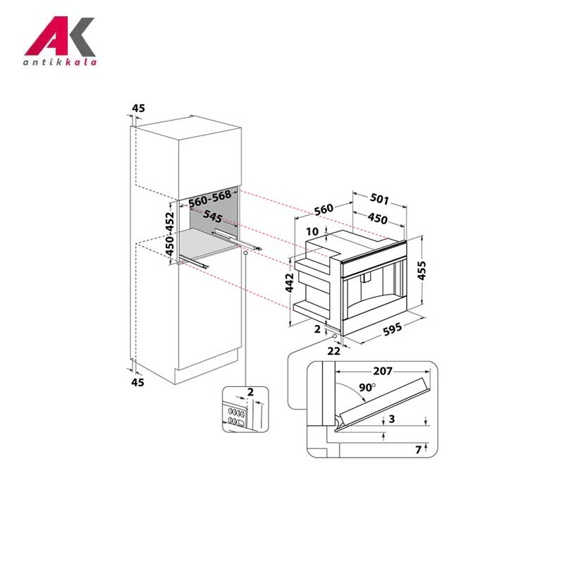 | عرض تورفتگی جهت نصب |