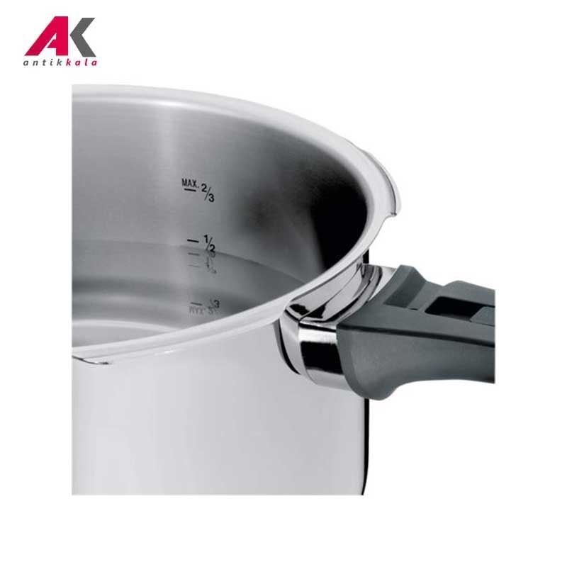 قفل ایمنی درب ,برخورداری از 2 تنظیم مجزای پخت؛ یکی برای مواد غذایی با بافت لطیف و دیگری برای پخت انواع گوشت ,برخورداری از فشار عملیاتی 45/95 کیلوپاسکال ,ساخته شده از استیل 18/10 با فناوری Cromargan ,کفی TransTherm با قابلیت پخش یکنواخت حرارت درون قابلمه ,مناسب تهیه وعده تا تعداد 6 نفر |